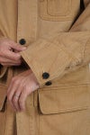 クラシックなハンティングジャケットの魅力を最大限に引き出しつつ、現代的なスタイルに落とし込んでいます。