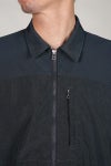 ジップアップのワークシャツをベースに、胸と背中からつながる袖や立体的な構造、そして機能的なポケットなど、細部にまでこだわり抜いたデザインが特徴です。