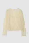 デコルテから袖にかけての透け感が、スタイリングに圧倒的な軽やかさをもたらします。
