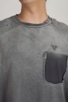 破れ落ちたように見えるフロントポケットは、シンプルなTシャツにユニークなアクセントをプラス。