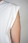 肩幅が広めに取られているのでノースリーブが苦手な方、着たことがない方も抵抗感なく着用できます。