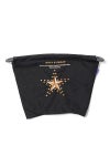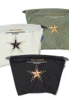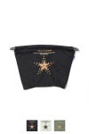 スタッズの輝きさえも糸で欺く、緻密な刺繍の規律が、シンプルなポーチに夜空の奥行きを刻む。