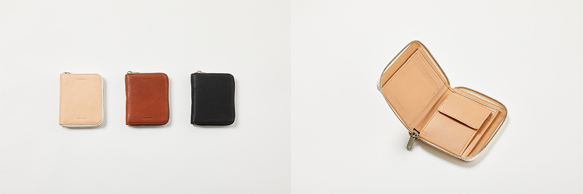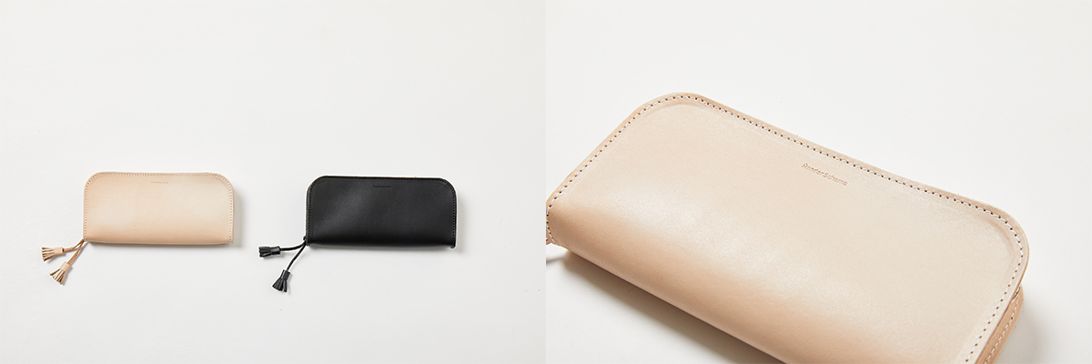 定番のsquare zip purseの素材を変更しました。