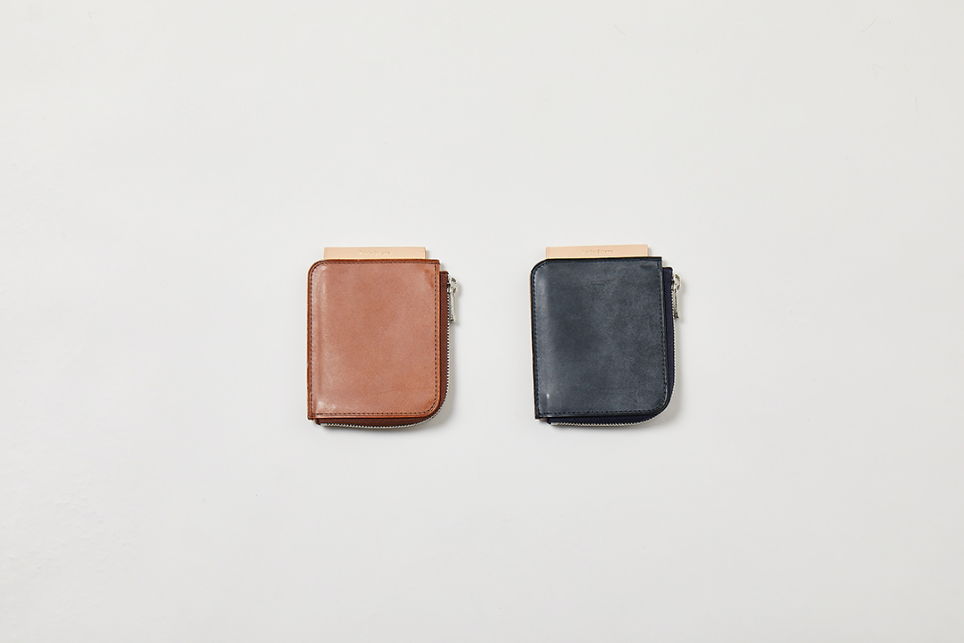 ロウとワックスのたっぷりと入ったベジタブルタンニンのカウレザーを表革で使用した L字のジップパース。
