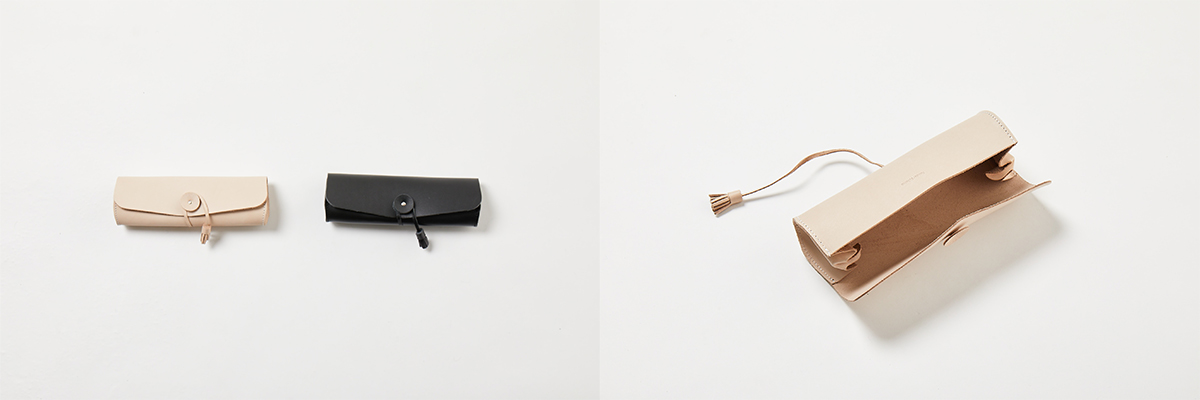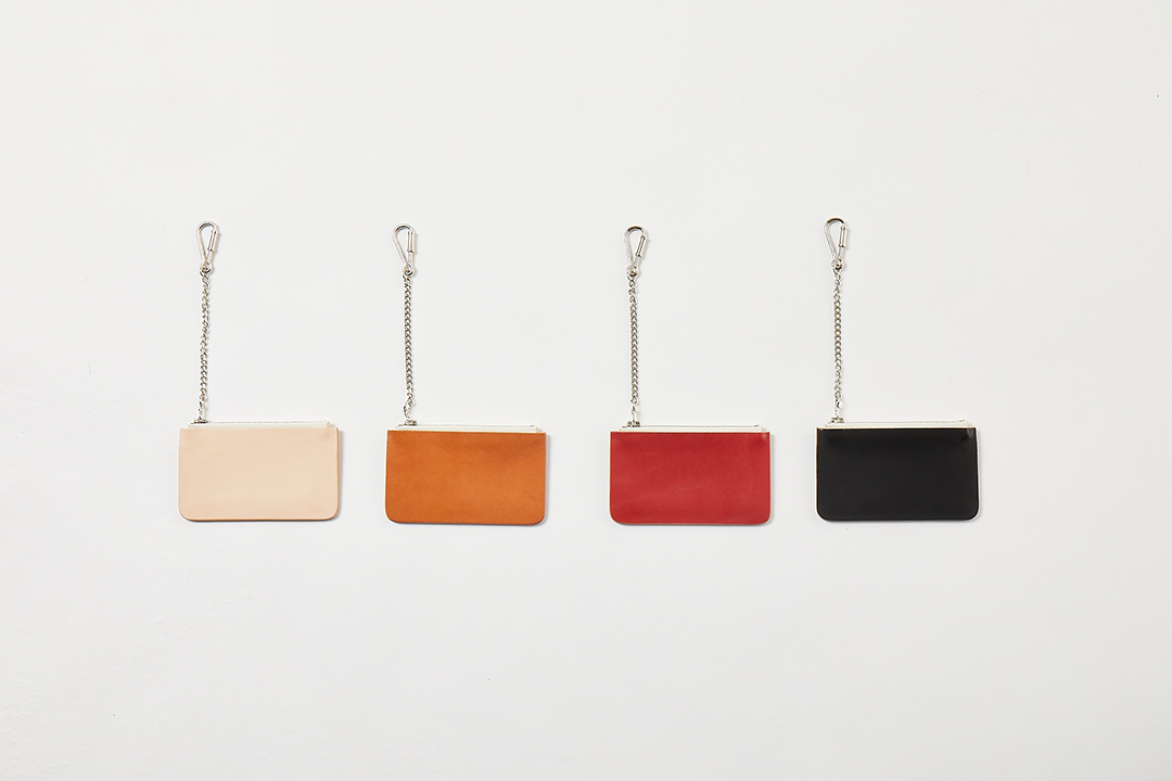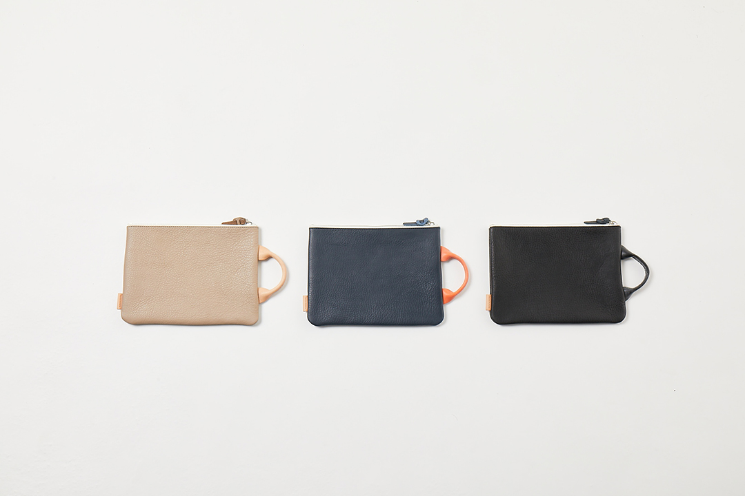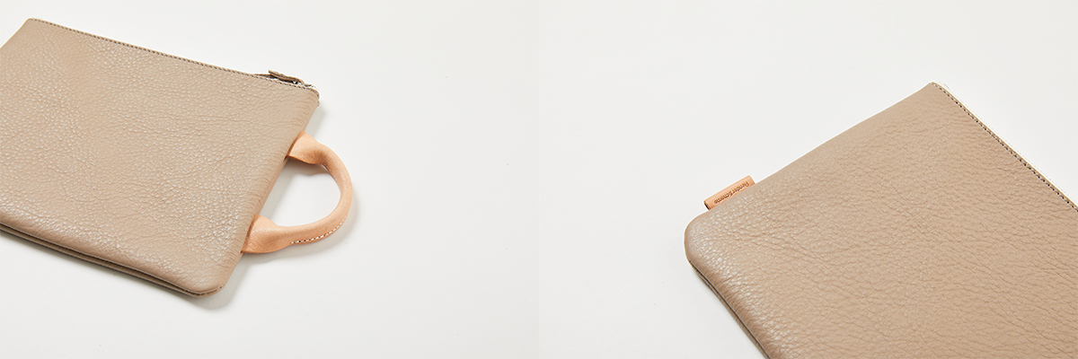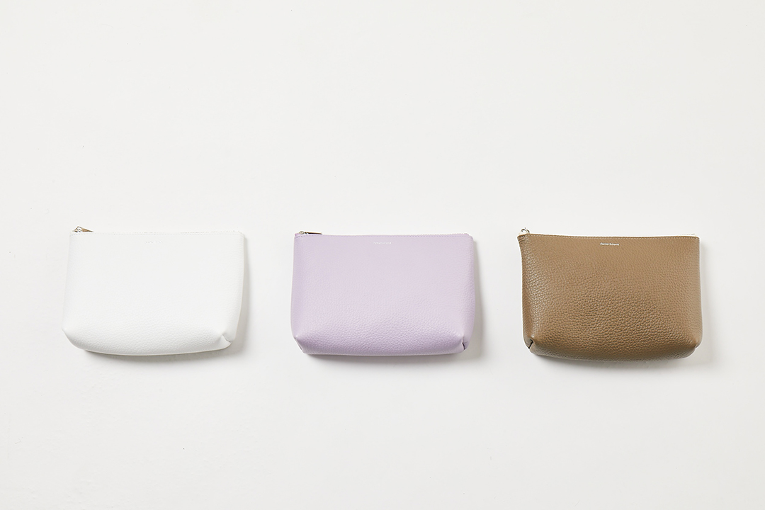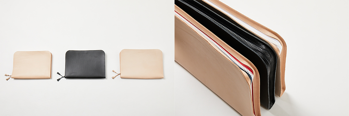 レザーで仕立てながら、極力シンプルにデザインしたポーチ。