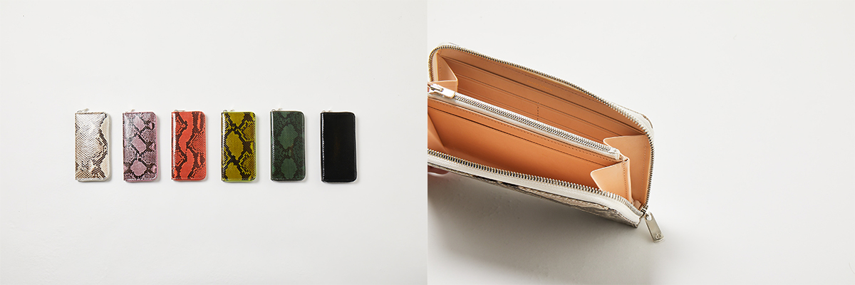外側には天然パイソンを使用しています。