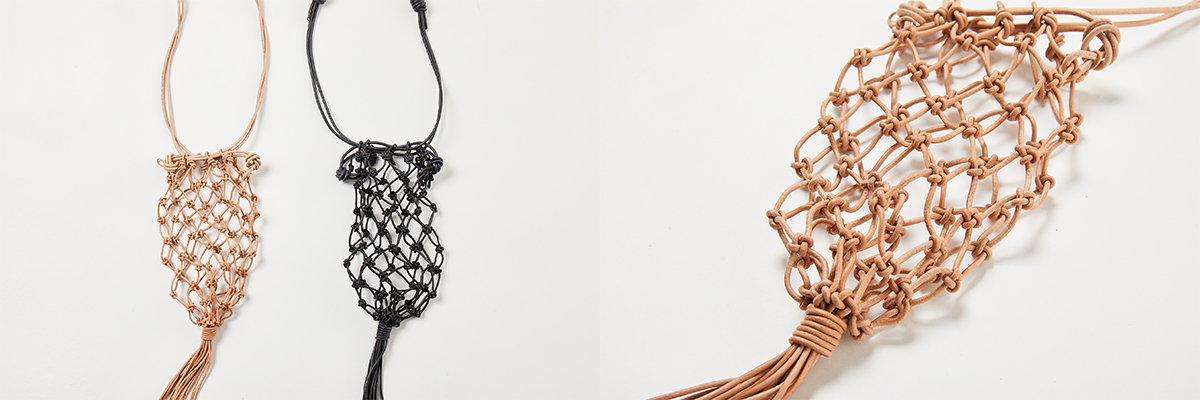 革紐で編んだ巾着型のbagです。