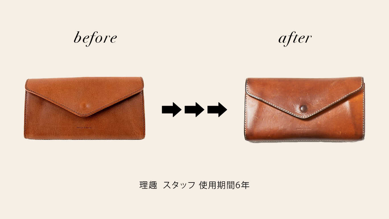 その人の癖や使い方次第で自分だけの色や革質に変化していく。