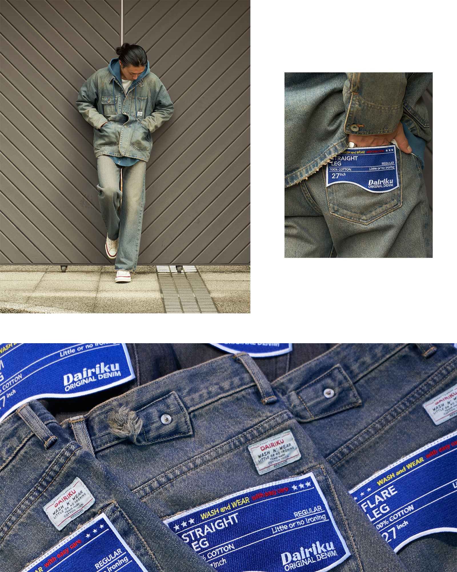 ダイリクのアイテムは、デザイナーの岡本自身が経験した思い出や好きな映画を着想源に、象徴的な空気感、イメージを細部にわたってスタイル全体にまで落とし込んだデザインが特徴的です。アメカジをベースに、オリジナルのシルエットや配色、プリント、刺繍などのディテールをプラスしています。