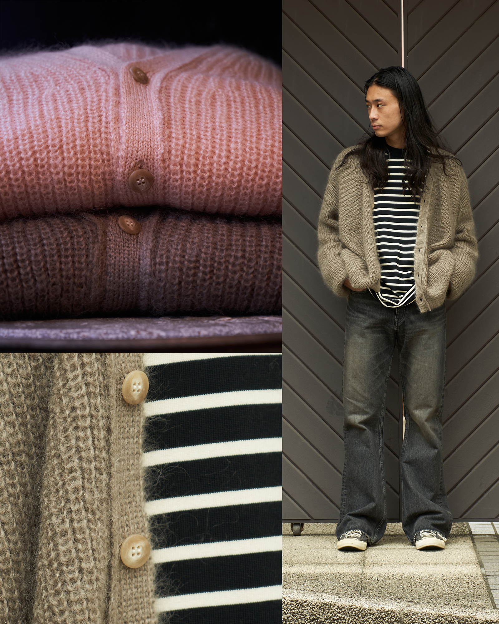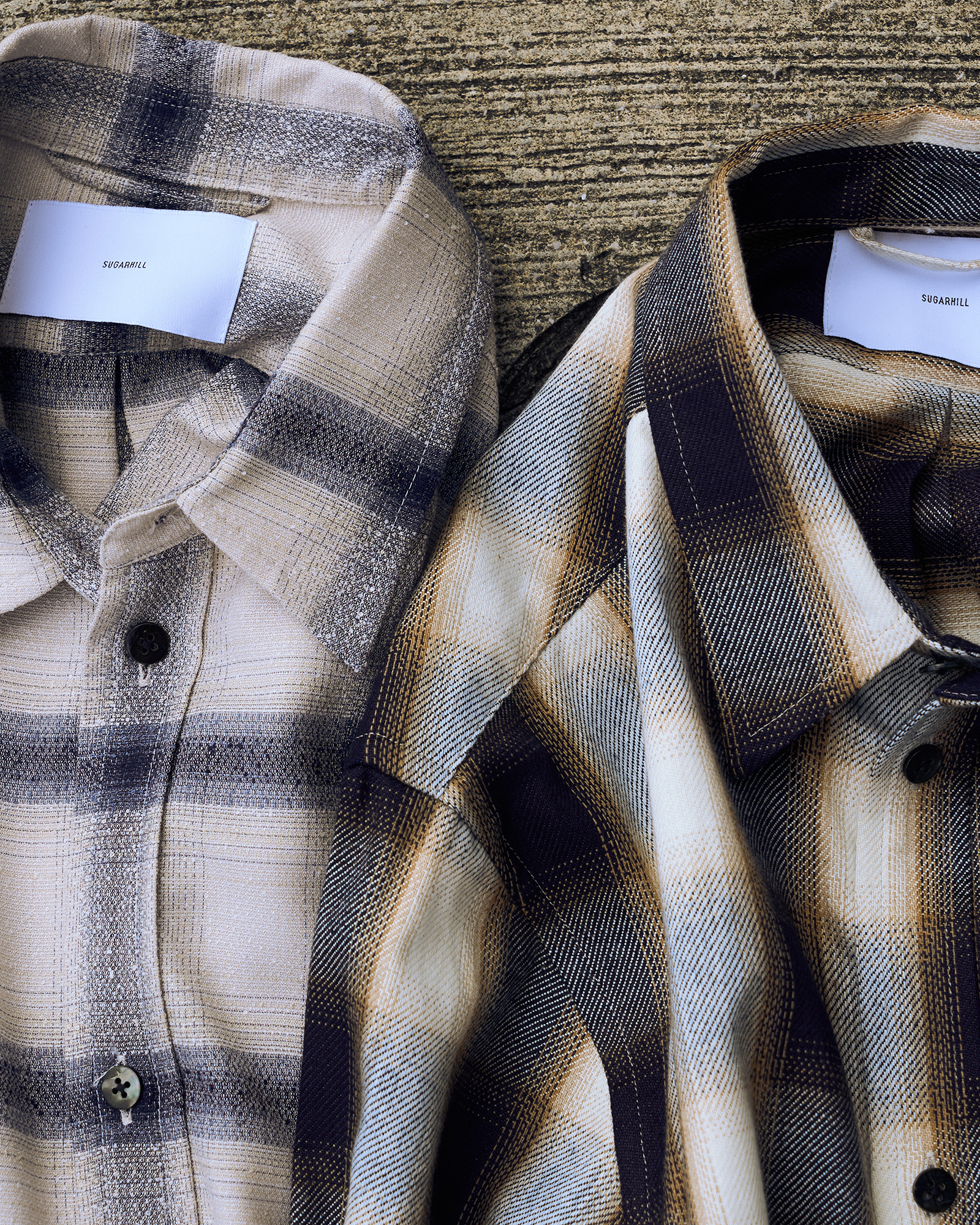 ミリタリーウエアやワークウエアをベースに、武骨さや尖った要素を中性的に再構築し、上質なウエアに昇華させるコレクションで若年層を中心に人気を集めています。素材の開発、色味の置き換え、風合いの研究、シルエットの再考といったプロセスを織り交ぜながらデザインに落とし込んでいます。特に、シュガーヒルは、様々な工場とタッグを組み、素材の肌触り、風合い、色味に重きを置いています。