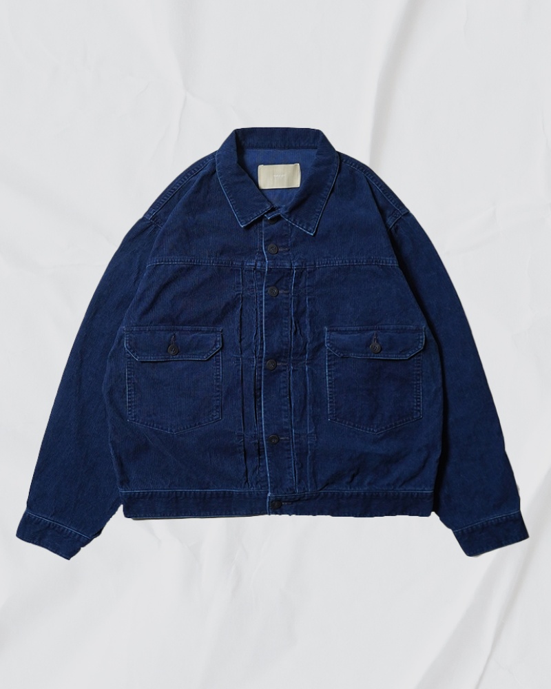 ヴィンテージのTYPE-2モデルを踏襲した、王道のデザイン。けれど、ぱっと見で普通のGジャンとはどこか違う印象を受ける一着。デニムではなく、インディゴ染めのコーデュロイを採用。