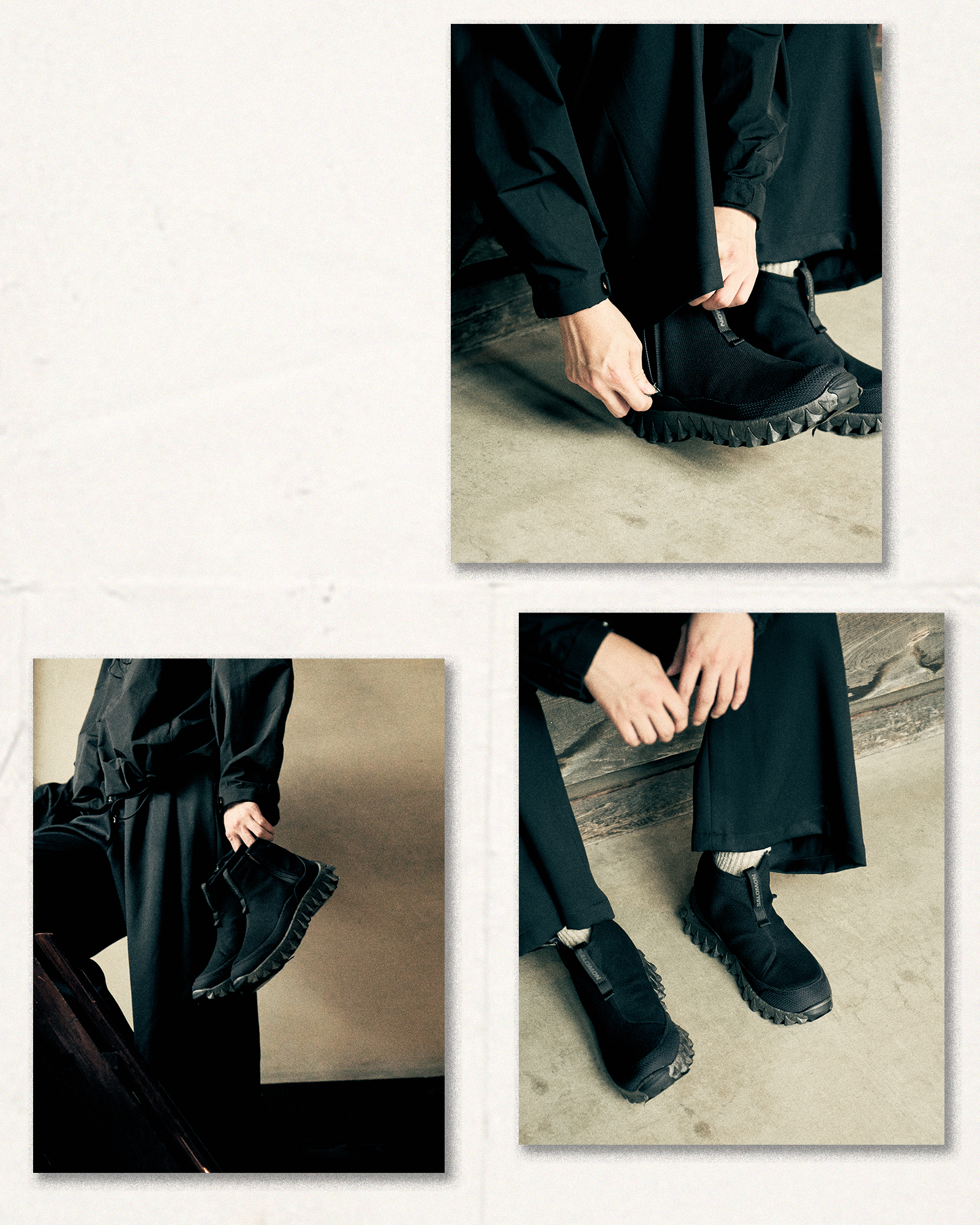 今回の相棒は、SALOMON(サロモン)。様々な場所、スタイルに溶け込む機能的なシューズばかり。何足も欲しくなるそんな靴と一日を過ごした。