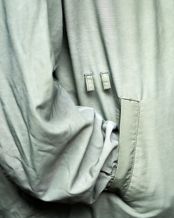 一見シンプルなコーチジャケットですが、作業員が実際に使用するディテールを用いたデザインに。