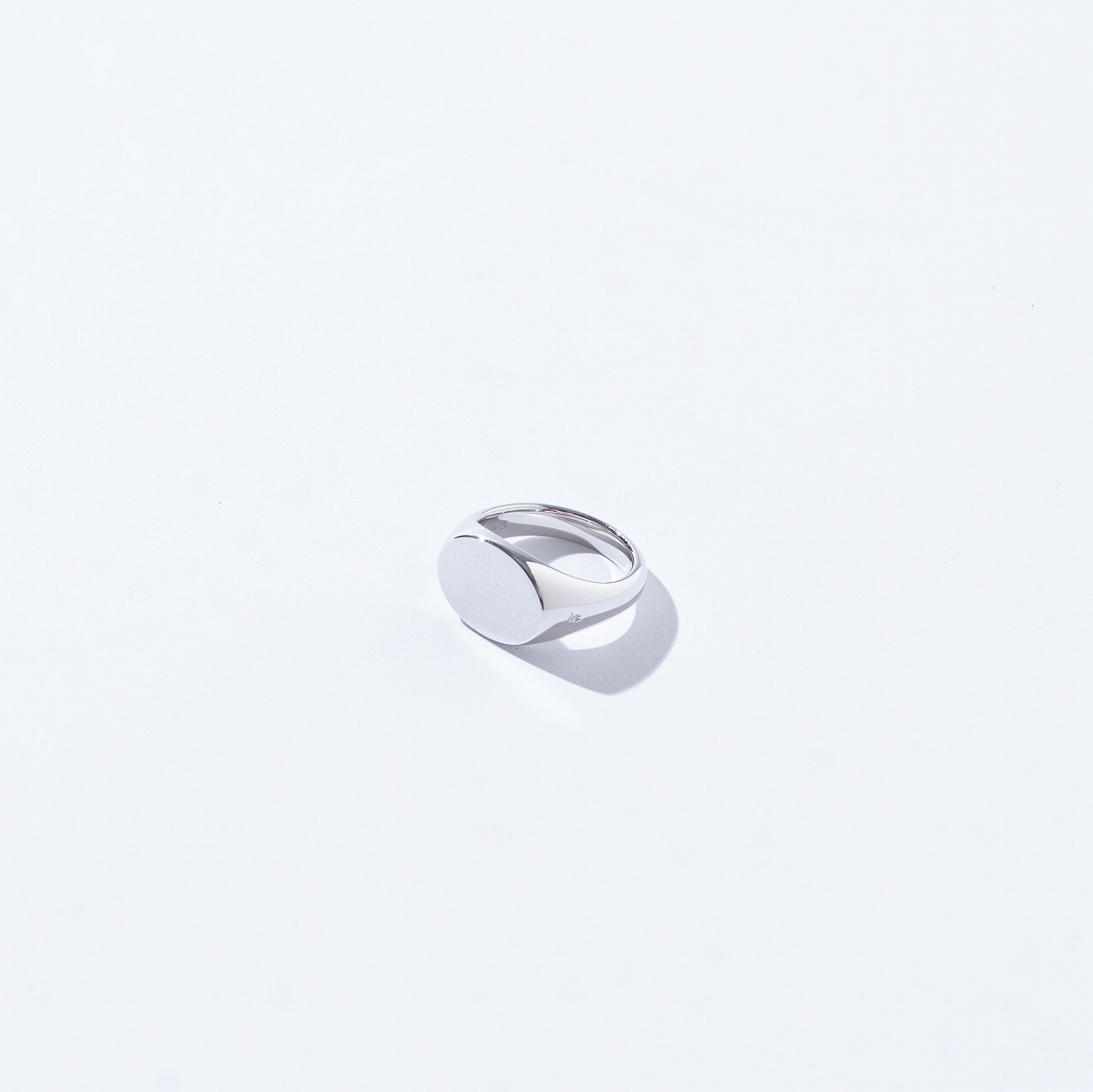 クラシックなシグネットリングをミニマルにアレンジしたもので、スリムに磨かれた表面により、着用すると肌に馴染み、上品で知性を感じさせるようなデザインに。