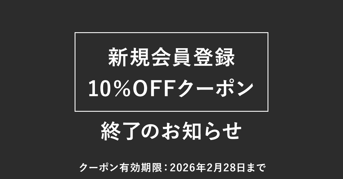 「新規登録10%OFFクーポン」の提供を、2026年2月末をもちまして終了させていただくこととなりました。