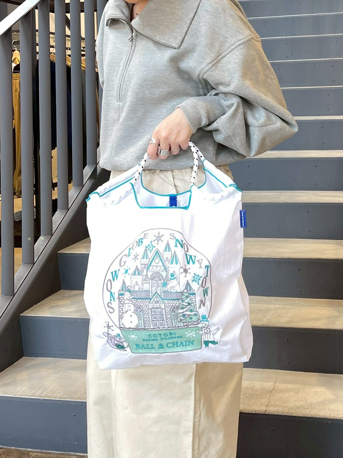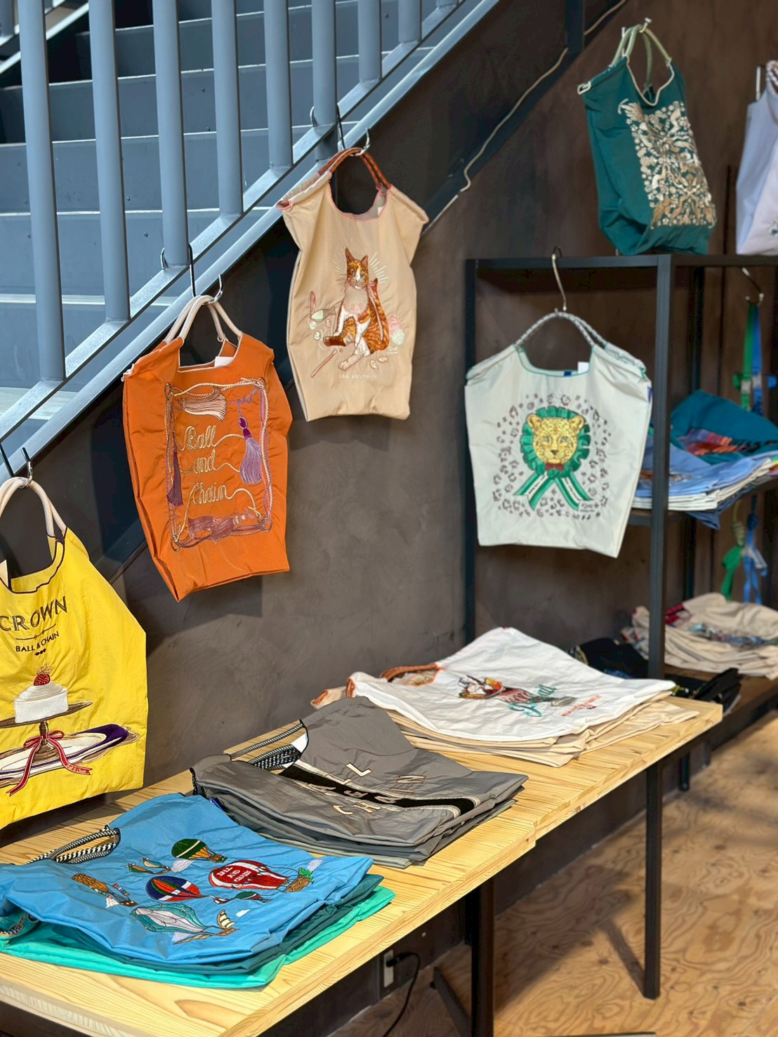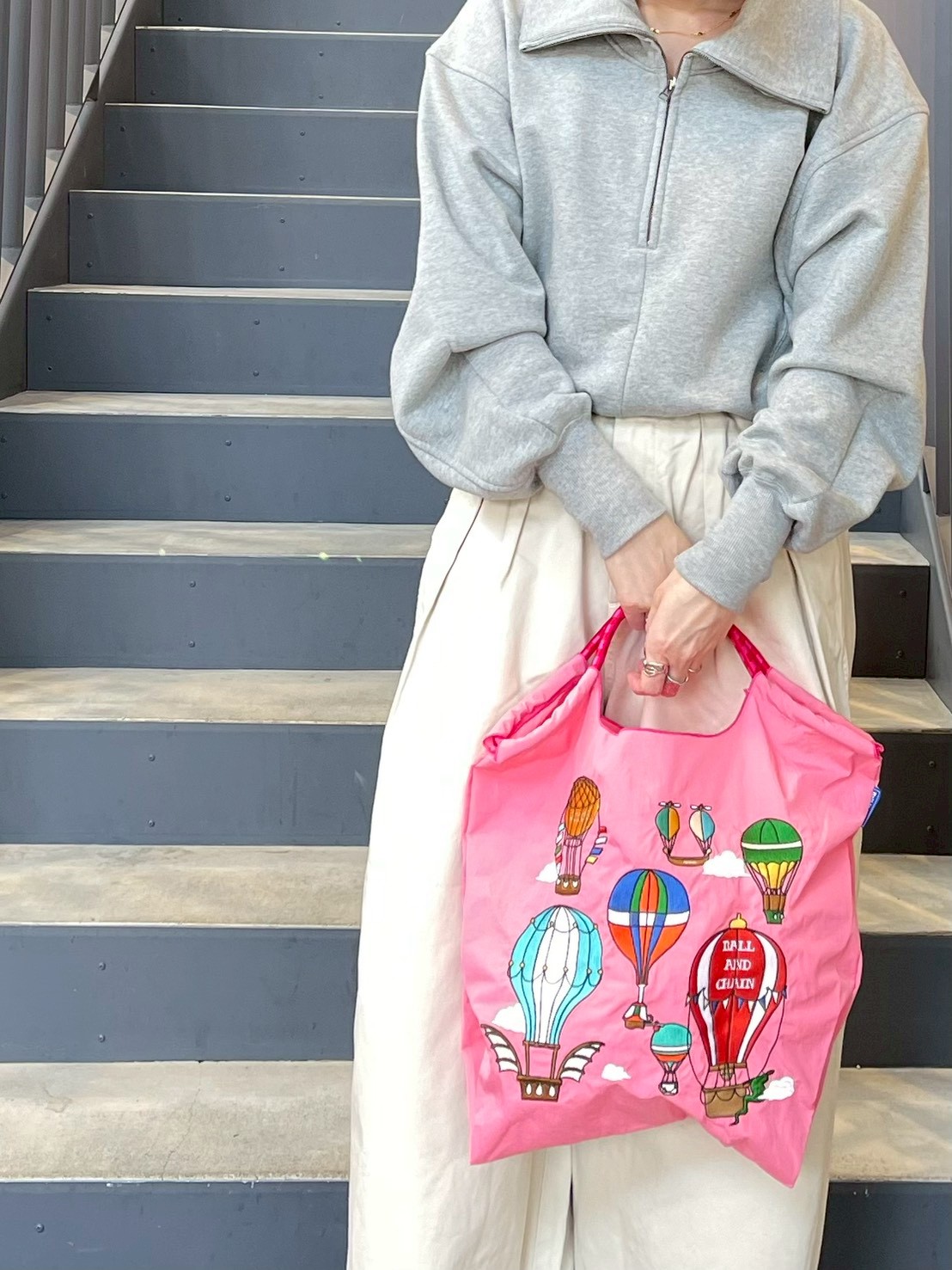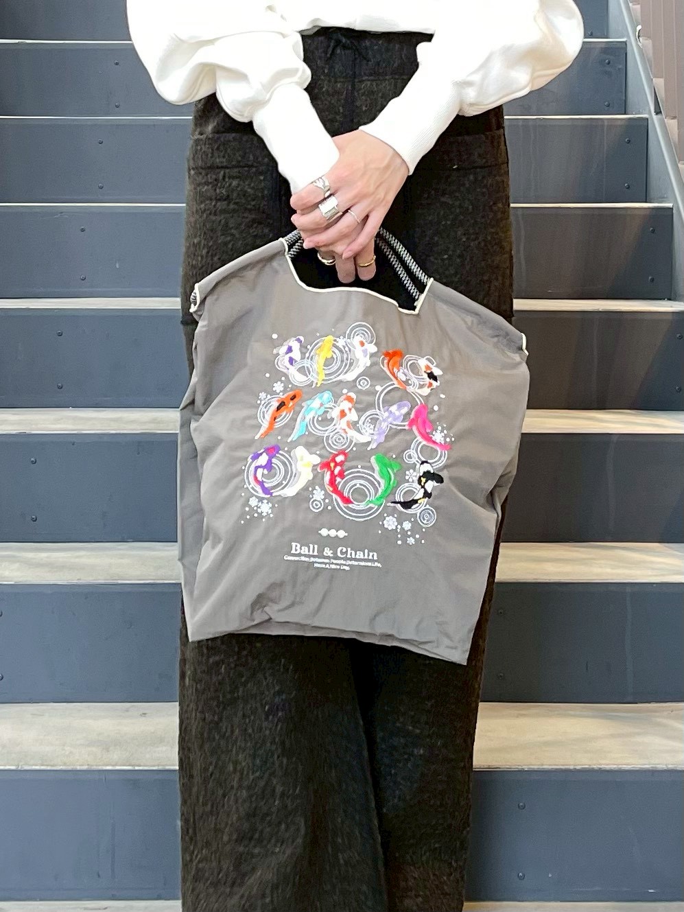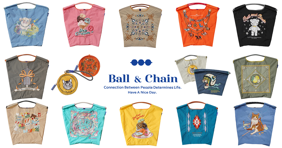 Ball&Chain(ボールアンドチェーン)はデザインやプロダクトの力を通して、世の中を元気にして行きたいという想いから誕生しました。レジ袋有料化に伴い生活必需品となったショッピングバッグ。しかしファッションを楽しむ人々にとって本当に持ちたいショッピングバッグは存在しているでしょうか?「普段のファッションに馴染むデザインが欲しい」、「ちょっとしたお買い物の最中にも見た目にこだわりたい」、「気分をアゲたい」・・・そのような希望を叶えるために耐久性、撥水性に優れた厚手のポリエステル素材に、グラフィックデザインを刺繍で施すことで、高級感がありデザイン性の高いショッピングバッグが誕生しました。