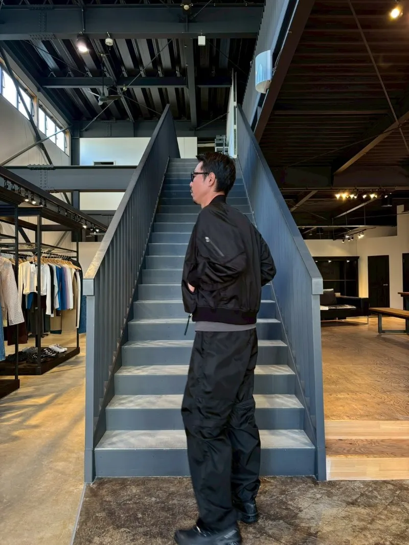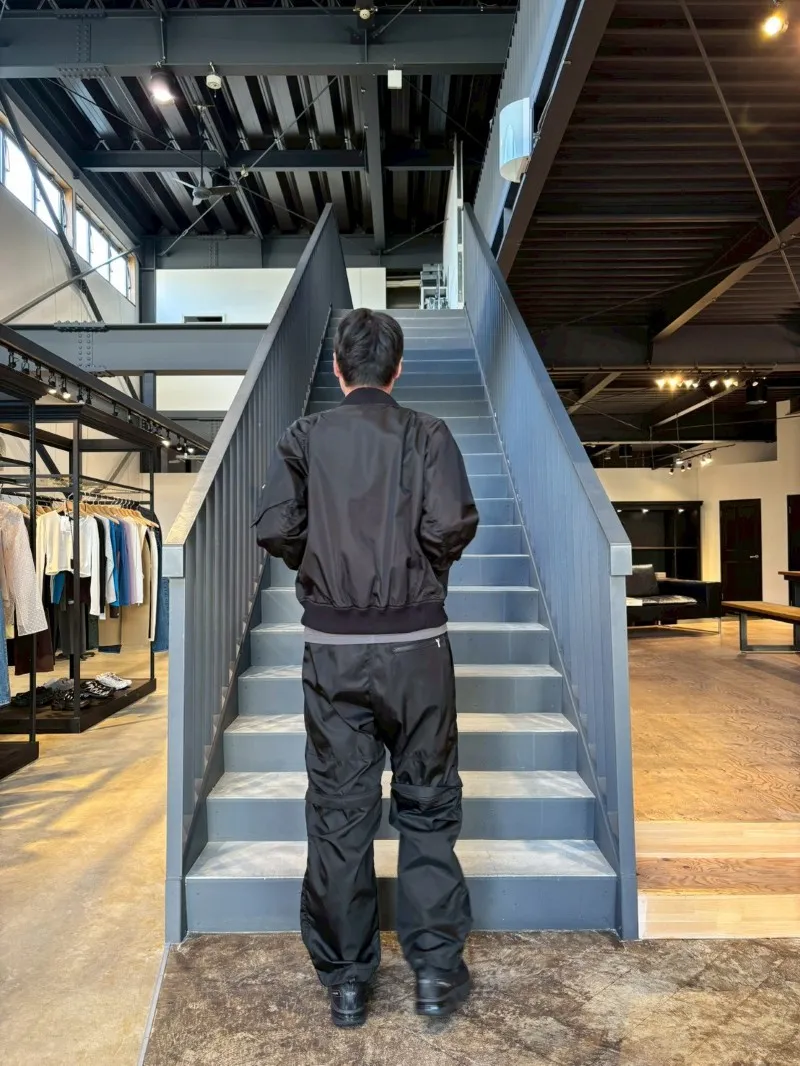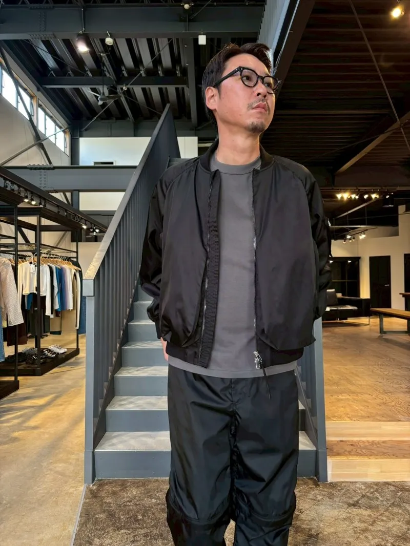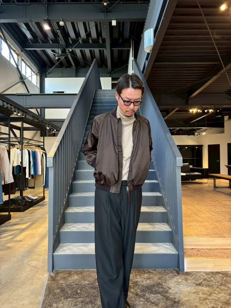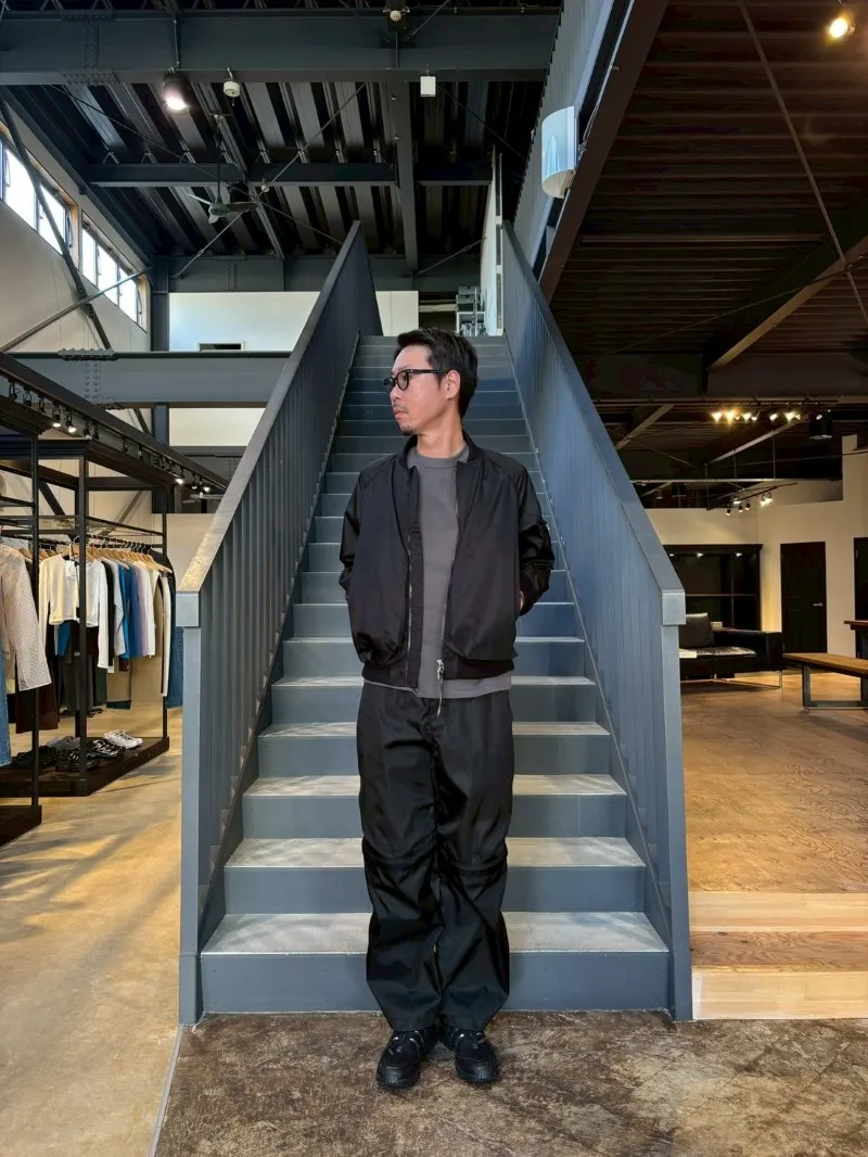 ボンバージャケットはもともと “ショート丈” なので、高身長の方には “脚長を活かしつつ上半身にも程よいボリューム” を作る上で非常に使いやすいアウターです。