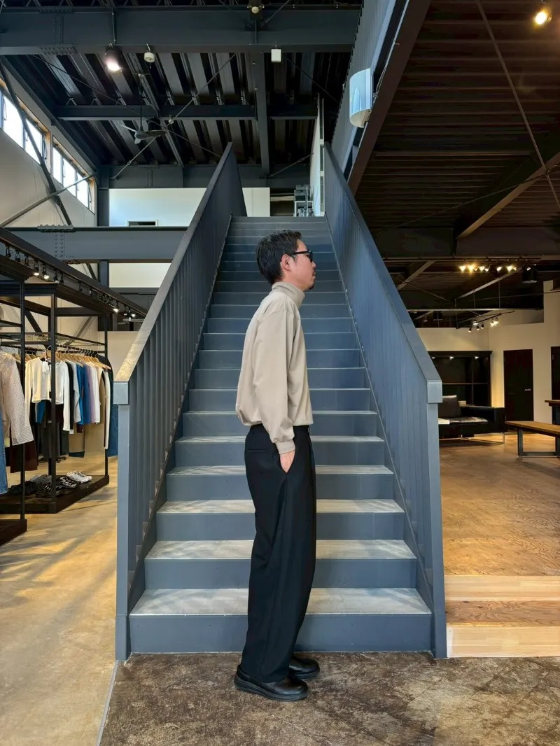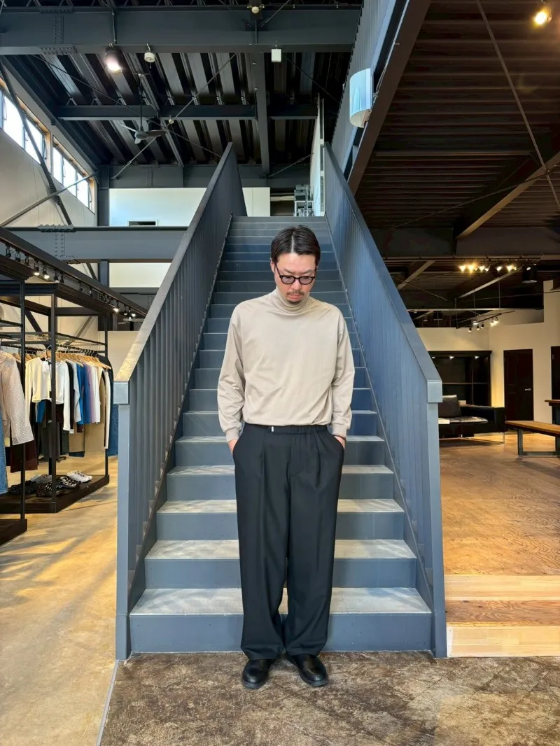 パンツを選ぶときはタック入りやワイドパンツなどを合わせると高身長のメンズはバランスがとりやすいかと思いますので、是非、ご参考くださいませ。