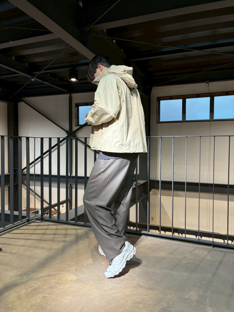 裾は気分でドローコードを軽く絞ると、足元に抜け感が出て◎。
