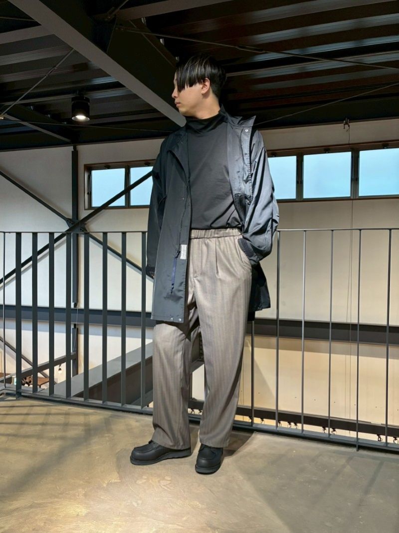 高身長の僕が穿くと、縦のラインが綺麗に落ちてシルエットがより強調されます。