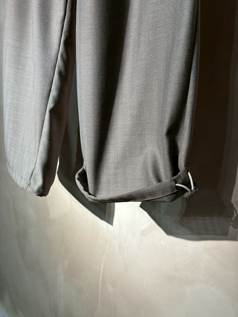 裾にはスピンドル(ドローコード)が仕込まれていて、気分によってテーパードにもストレートにも変化。