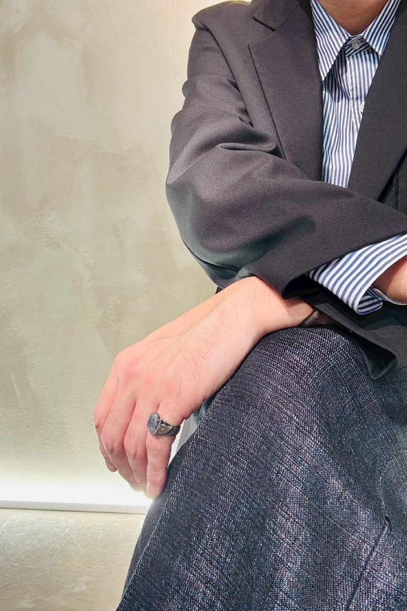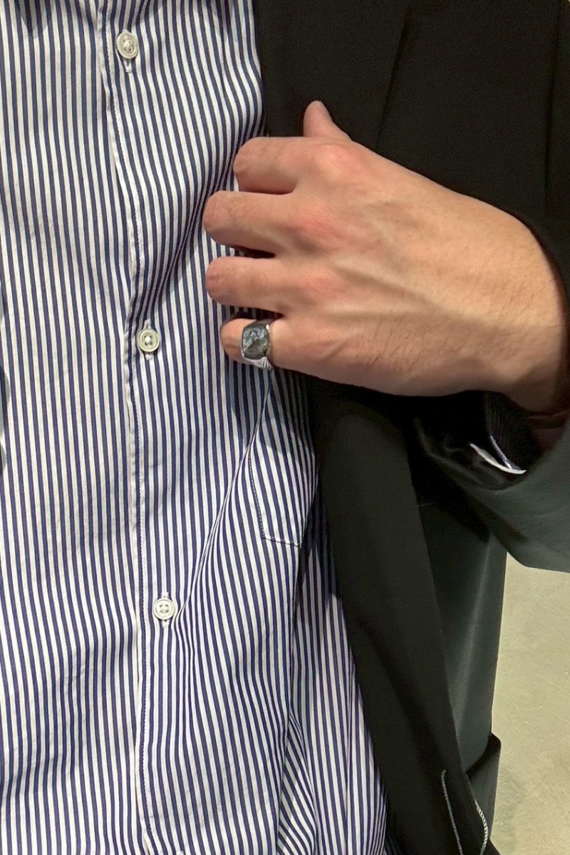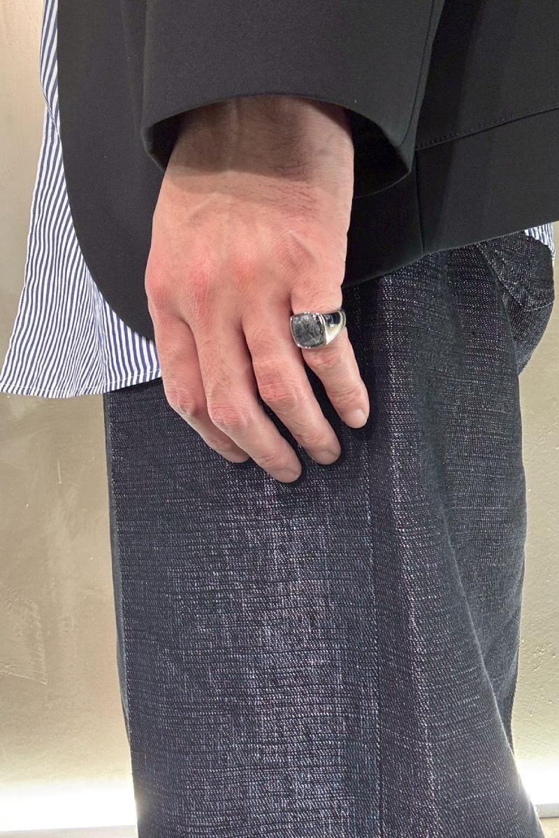 最初にTOMWOODの方はリングなのですが写真で僕が小指にしているのがCushion Larvikite クッション・ラルビカイトになります。