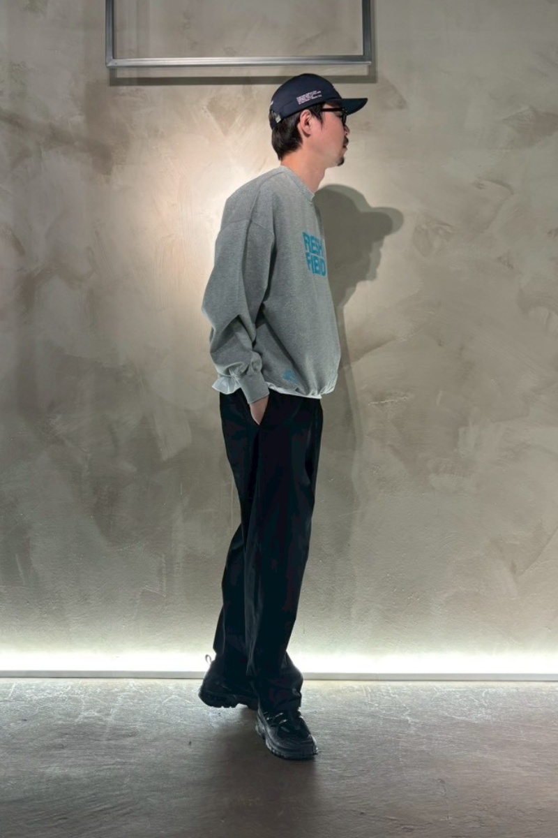 裏起毛のスウェット素材は肌あたりもやさしく、季節の変わり目から真冬のインナー使いまでロングシーズン活躍。日常にさりげないメッセージ性をプラスしてくれる、スタイリングの主役になるスウェットです。