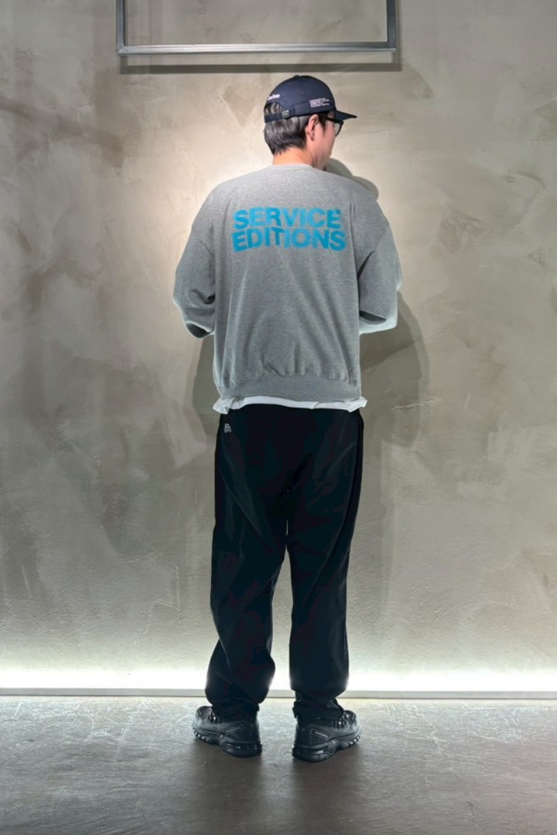 最初のアイテムはフロントに“FRESH FRIEND”、バックには“SERVICE EDITIONS”と、それぞれのキーワードを大胆にプリントした、両者の関係性を象徴する一枚です。