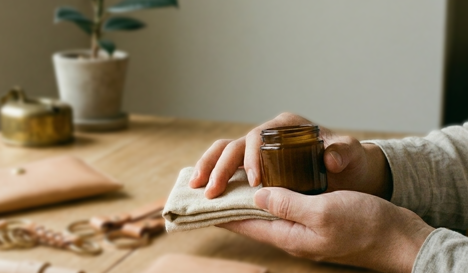 特別なフレグランスを加え、ミモザのタンニンで鞣したレザーを採用。