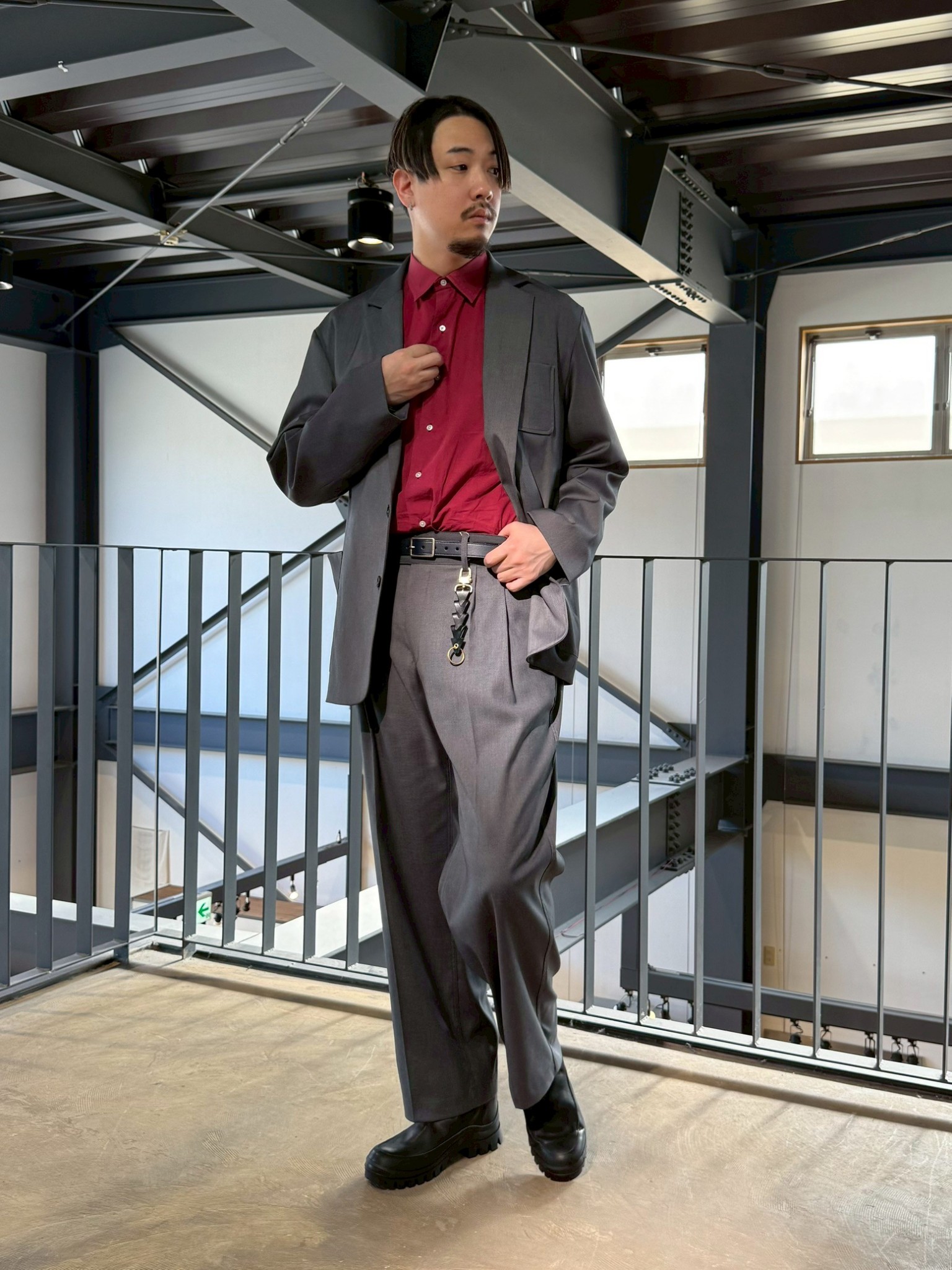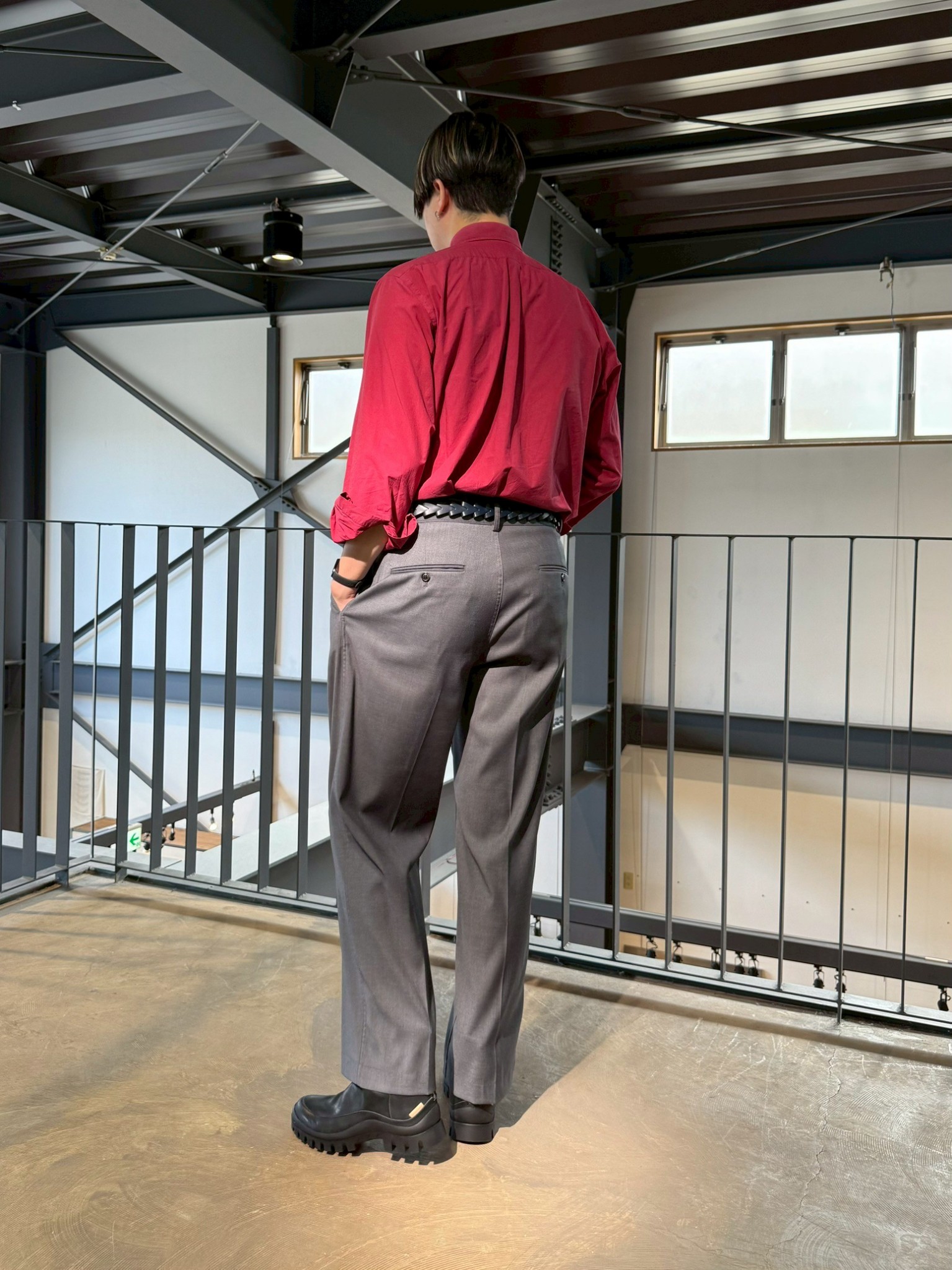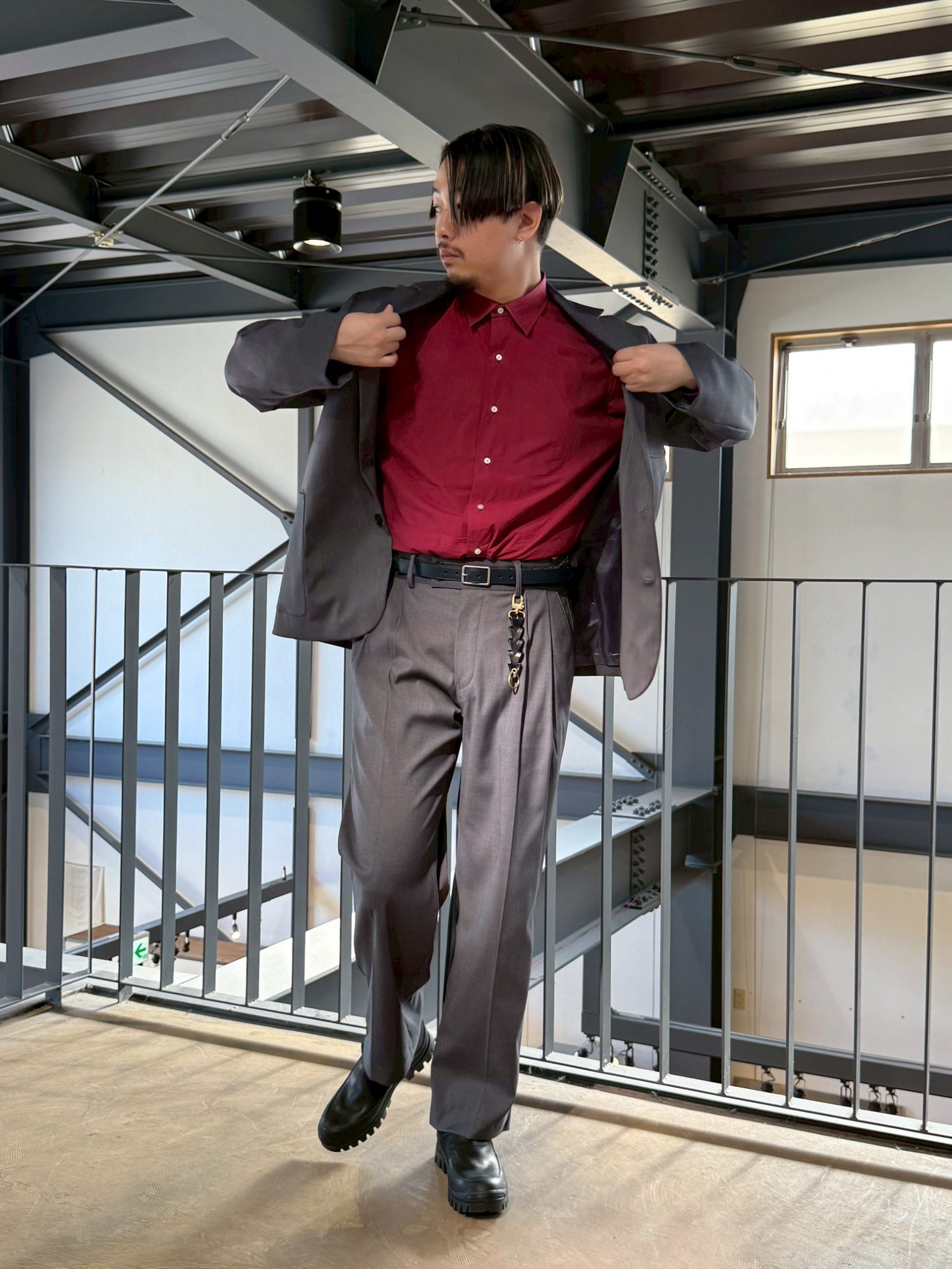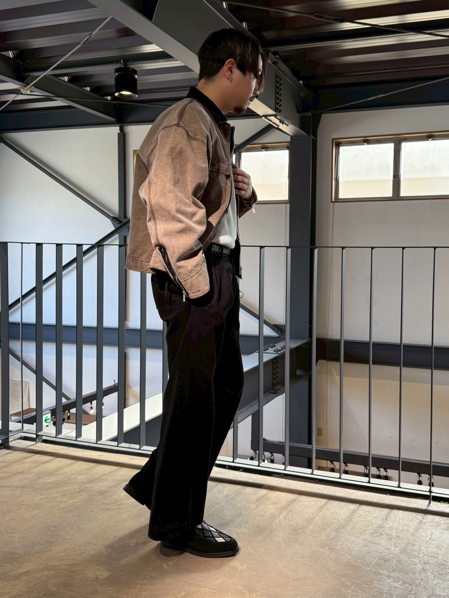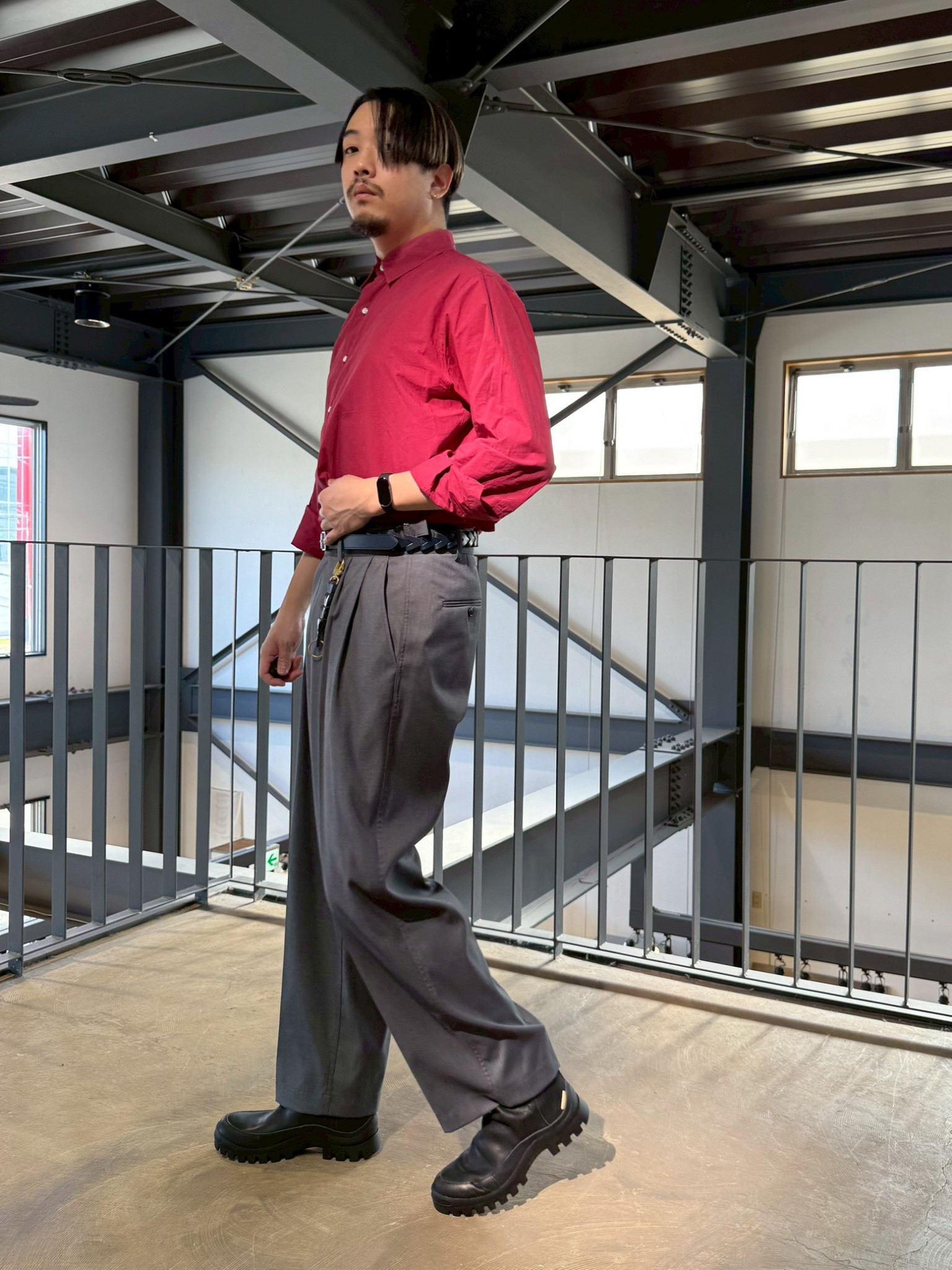 同じくダークブラウンの construct belt は無駄のないミニマルなバックルデザインで、上質な革の厚みと奥行きある色味が魅力。ミリタリージャケットやワイドパンツと合わせることで、カジュアルな装いを品良くまとめてくれます。