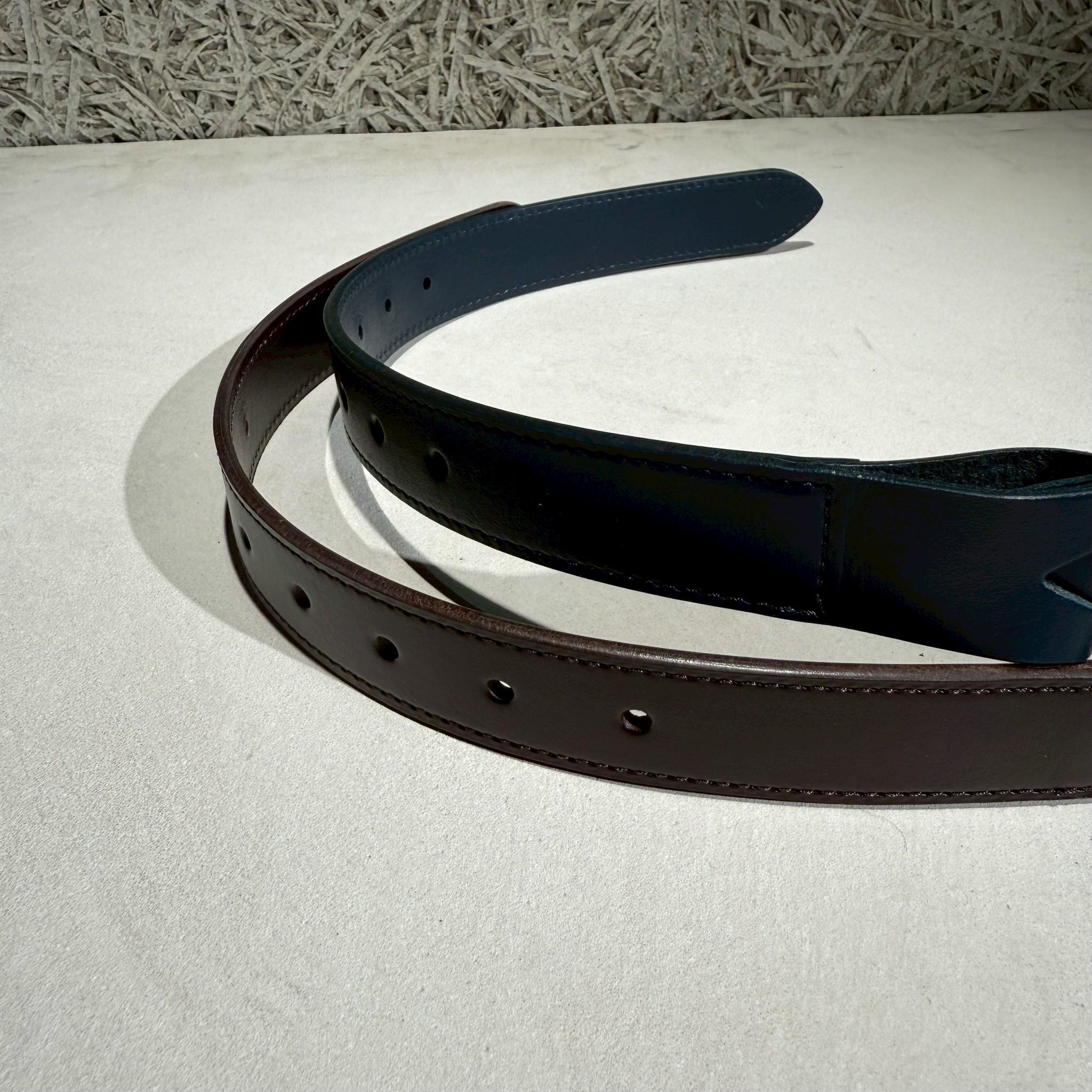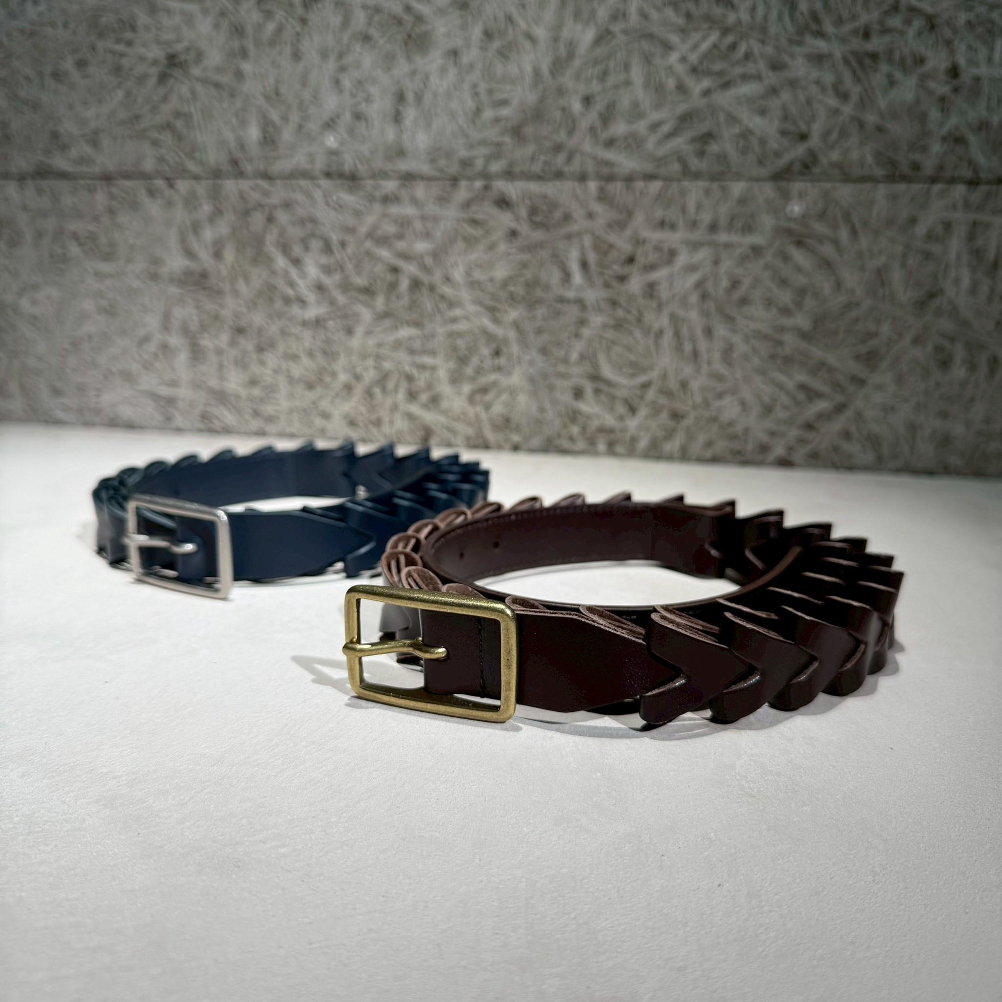 ネイビーの construct belt は深い色合いとレザーの艶が相まって、モードにもクラシックにも馴染む一本です。