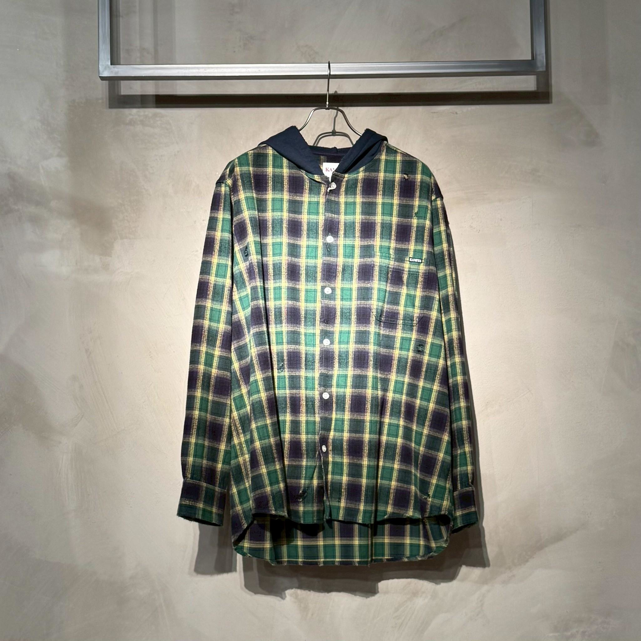 インナーにはダメージ加工のヘンリーネックスウェットを合わせ、ストリートながらも“抜け感”のあるムードに。