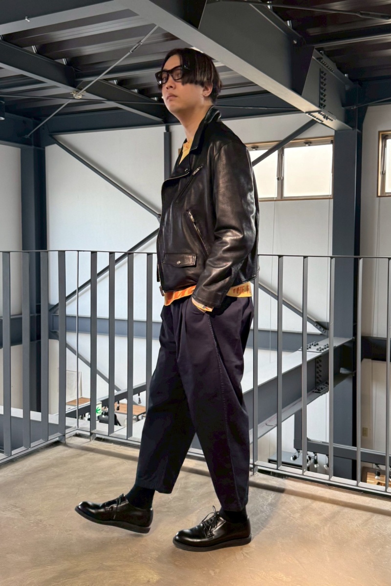 レザーライダースは、身長がある人ほど「着られてる感が出にくく、ジャケットが主役になる」のが魅力。