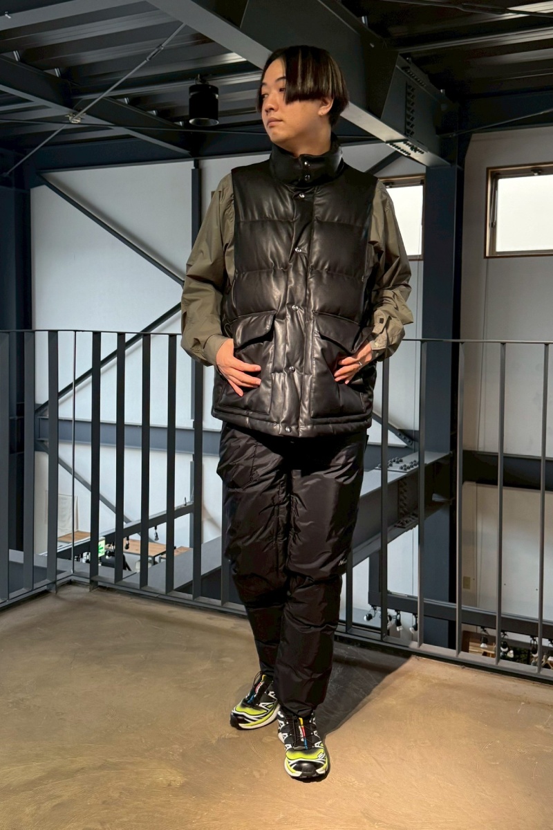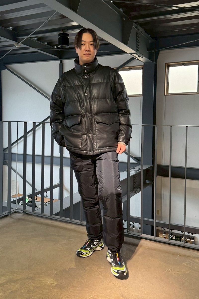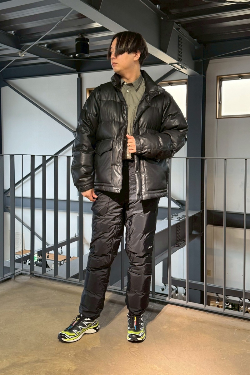 Styling ②:テックレザー×ダウンで“都会的な迫力”