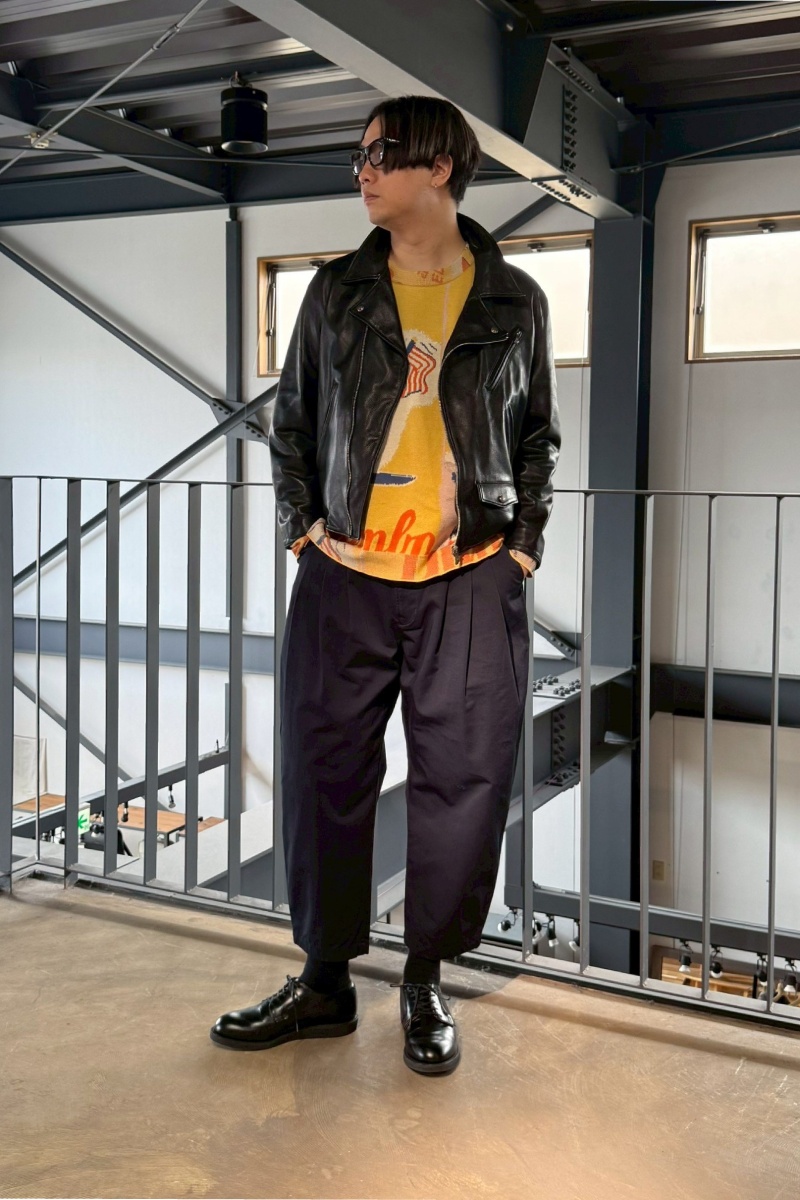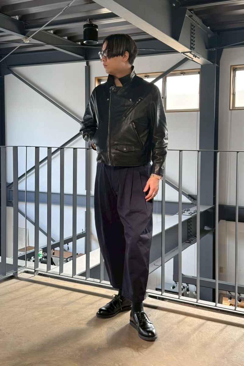 • レザー特有のボリュームが、全身バランスを整えてくれる