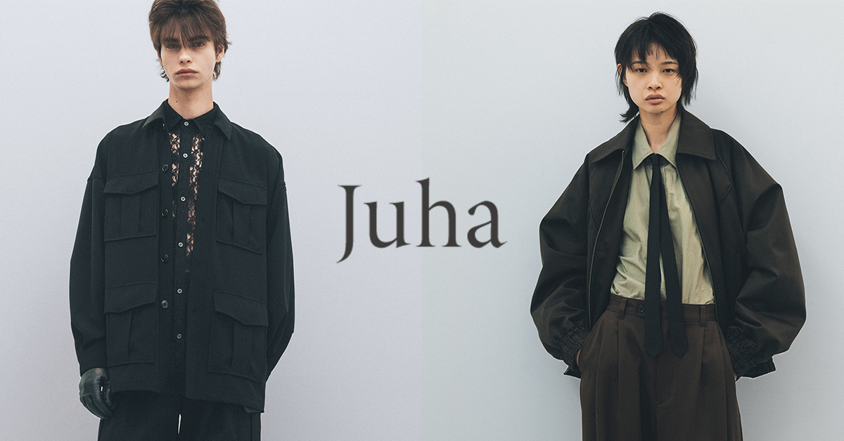 JUHA/ユハは大阪文化服装学院を卒業し、東京のコレクションブランドのデザインチームに在籍していたデザイナー・武長遼氏が2015年SSシーズンよりスタートした日本のファッションブランドです。