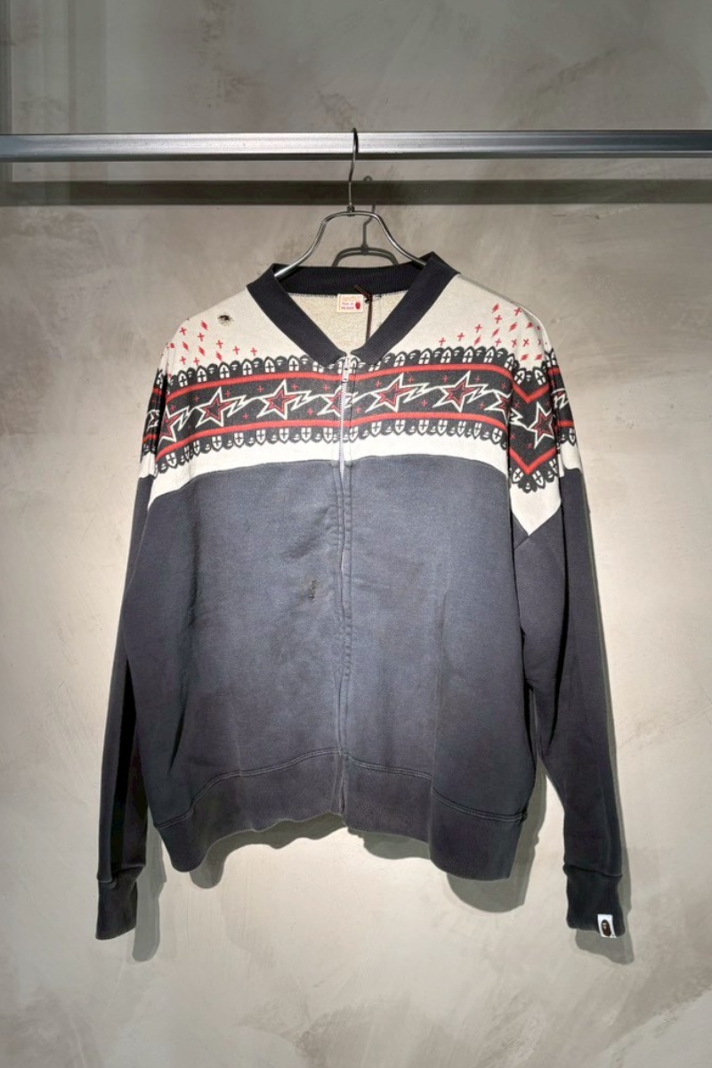 ジップカーディガンは、BAPE®(ベイプ)のアーカイブに見られるノルディック柄のモチーフを、©SAINT Mxxxxxx(セントマイケル)デザイナーが描き起こしたデザイン。