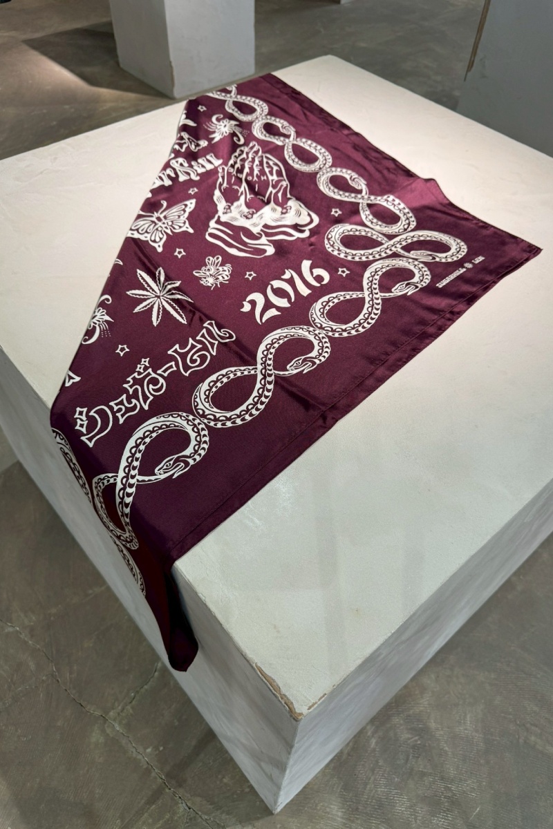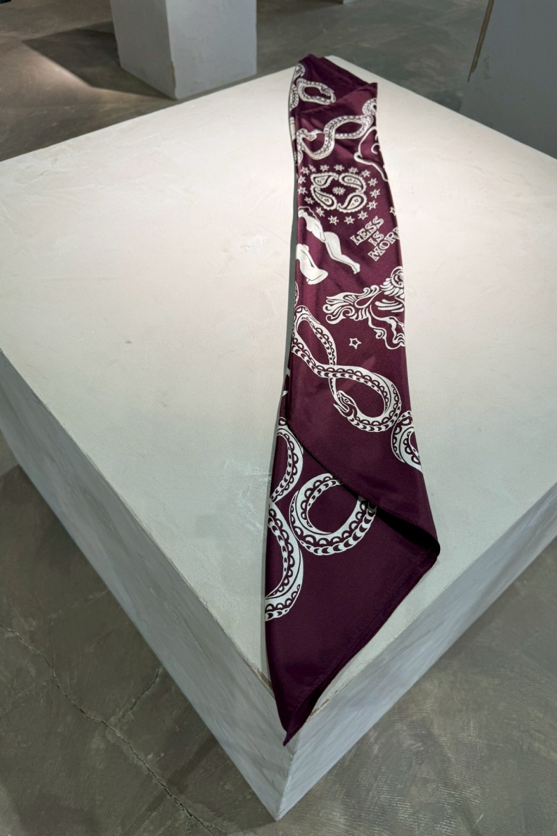 首元に巻いた際には一部のグラフィックがさりげなく覗き、スタイリングに“主張しすぎない個性”をプラスしてくれます。