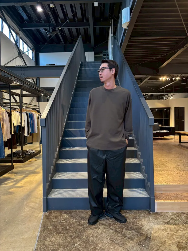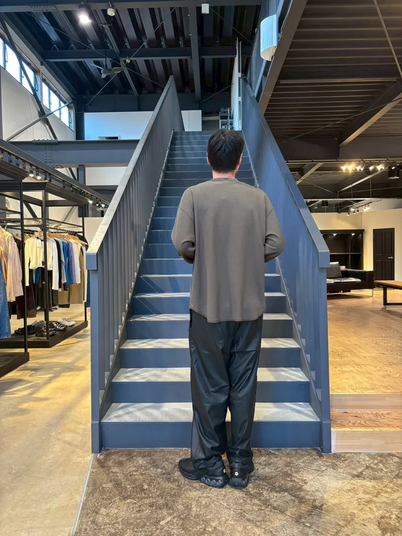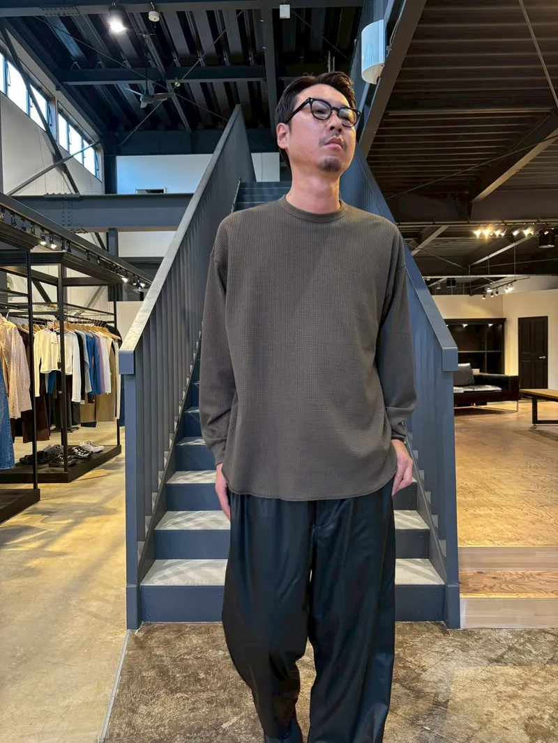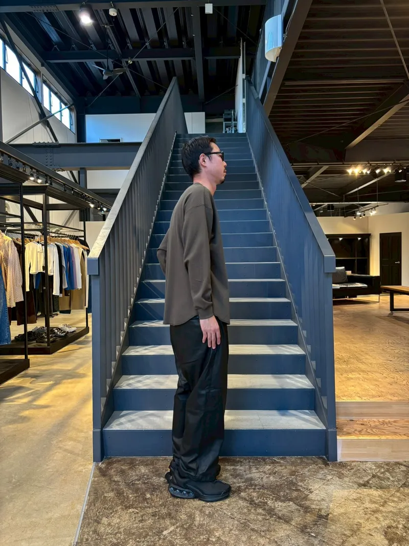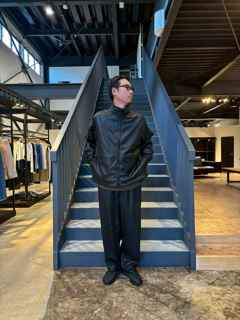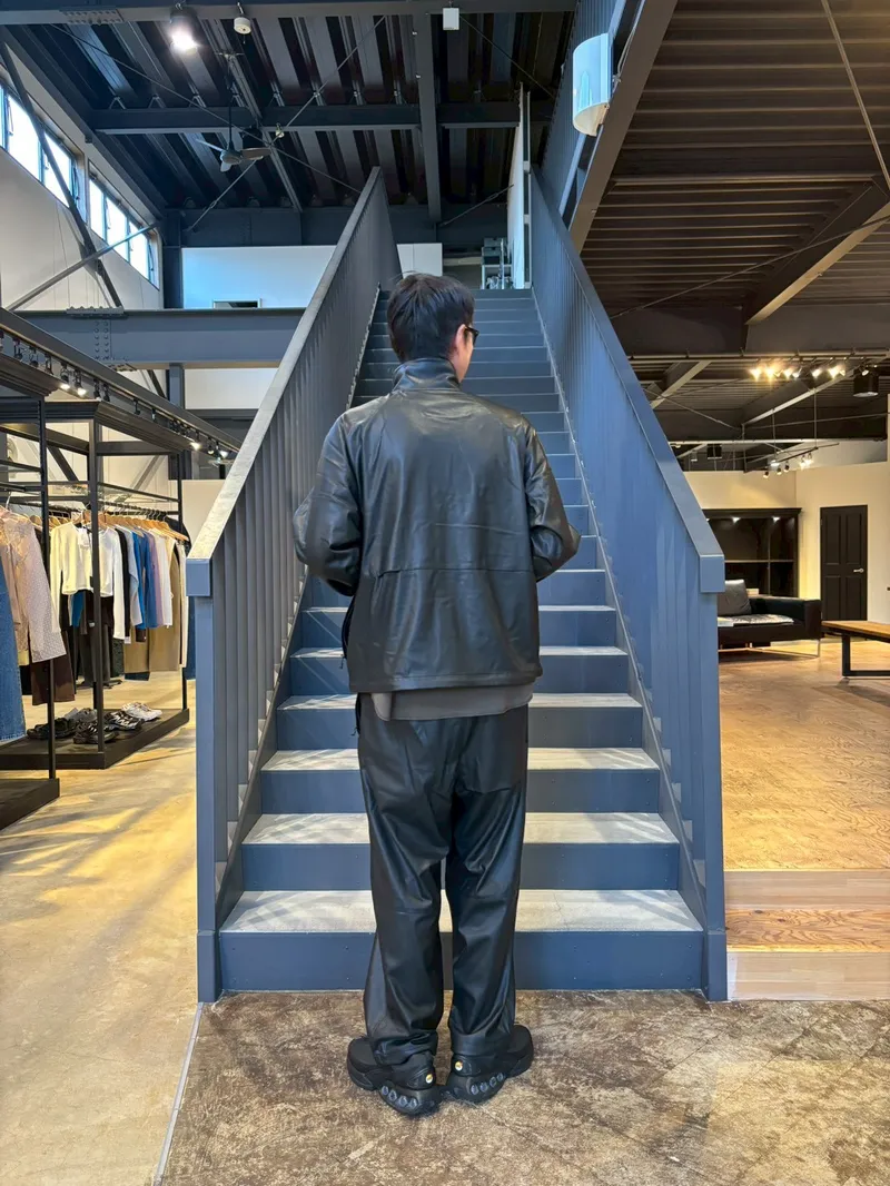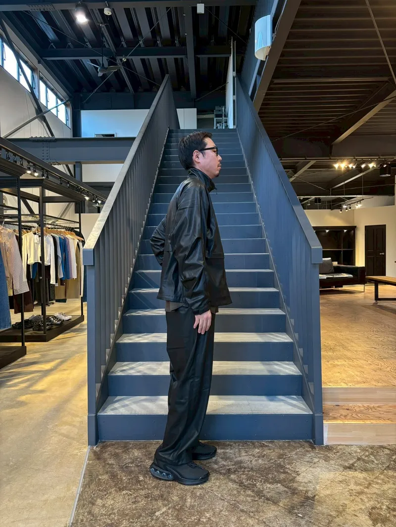 全身真っ黒のセットアップだと長身・レザーという要素が強調されすぎてしまうのでご注意です!